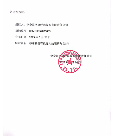 關(guān)于“淖爾壕煤礦井田東北部3#、4#物探異常區(qū)補充勘察及邊界防隔水煤柱安全驗證”項目公開招標(biāo)變更公告